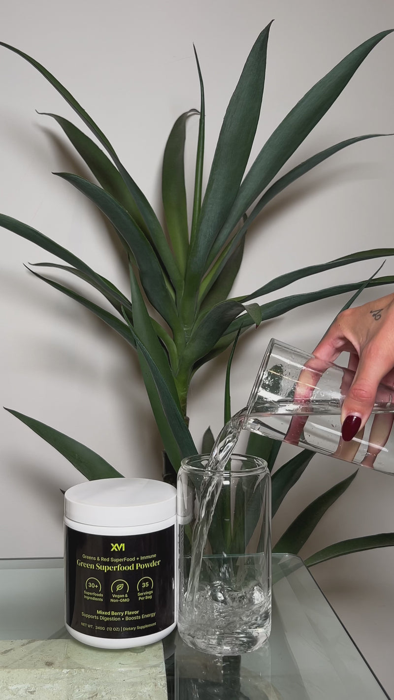 XV1 Green Superfood Powder is a high-performance daily health blend that combines organic greens, red antioxidants, immune support, and probiotics into one simple, effective ritual. Designed to be taken every morning, it supports digestion, energy, immunity, and more—with a smooth, refreshing mixed berry taste.